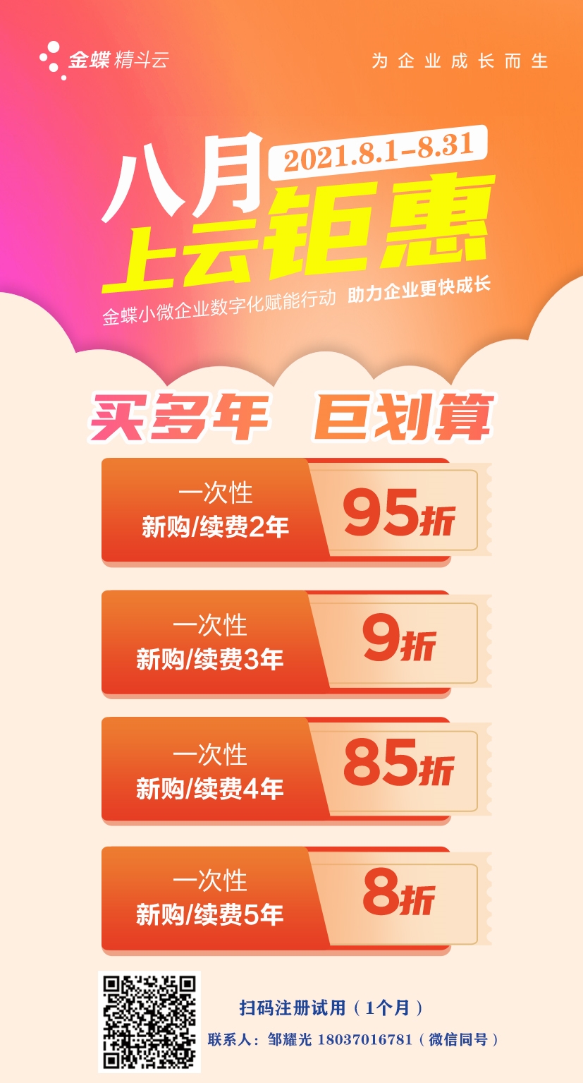 洛阳金蝶软件-金蝶精斗云产品2021.8月促销活动