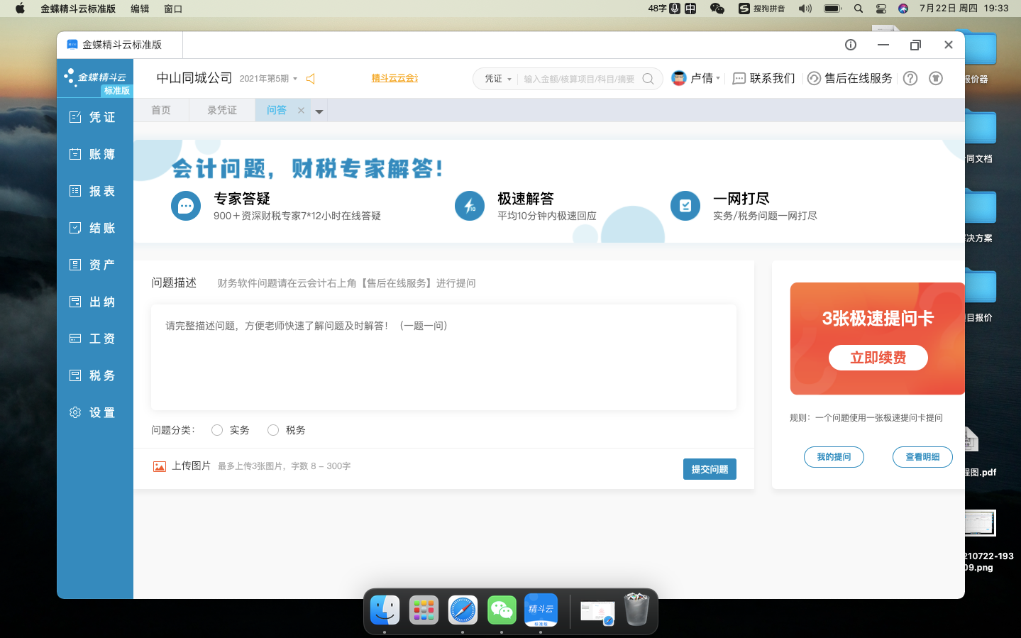 用户可根据问题的性质,选择该问题属于实务还是税务类型,系统支持用户在文件框内用文字描述问题,也支持上传图片作为辅助说明。