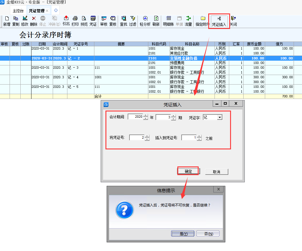 2、凭证序时簿增加凭证插入功能,处理插入凭证的业务场景