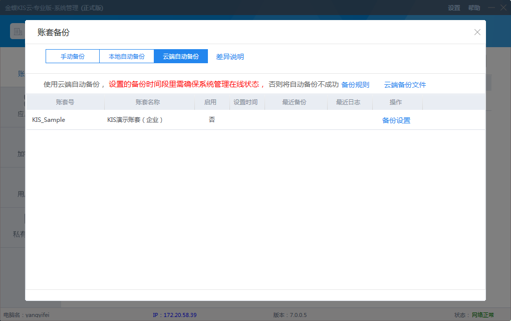 系统管理增加账套自动云备份功能,保障账套数据安全