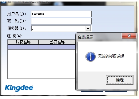洛阳金蝶软件-金蝶KIS专业版服务器登陆金蝶提示无效授权