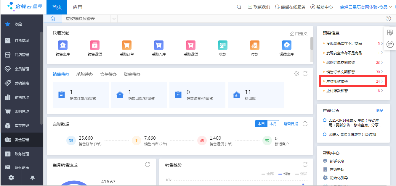 通过金蝶云·星辰的信用管理和预警功能,鸿兴业大大提升了应收账款回款速度和效率。首先重点关注回款时间,客户账款到期前一周会自动进行预警提醒,让销售员提前进行应收账款催收。