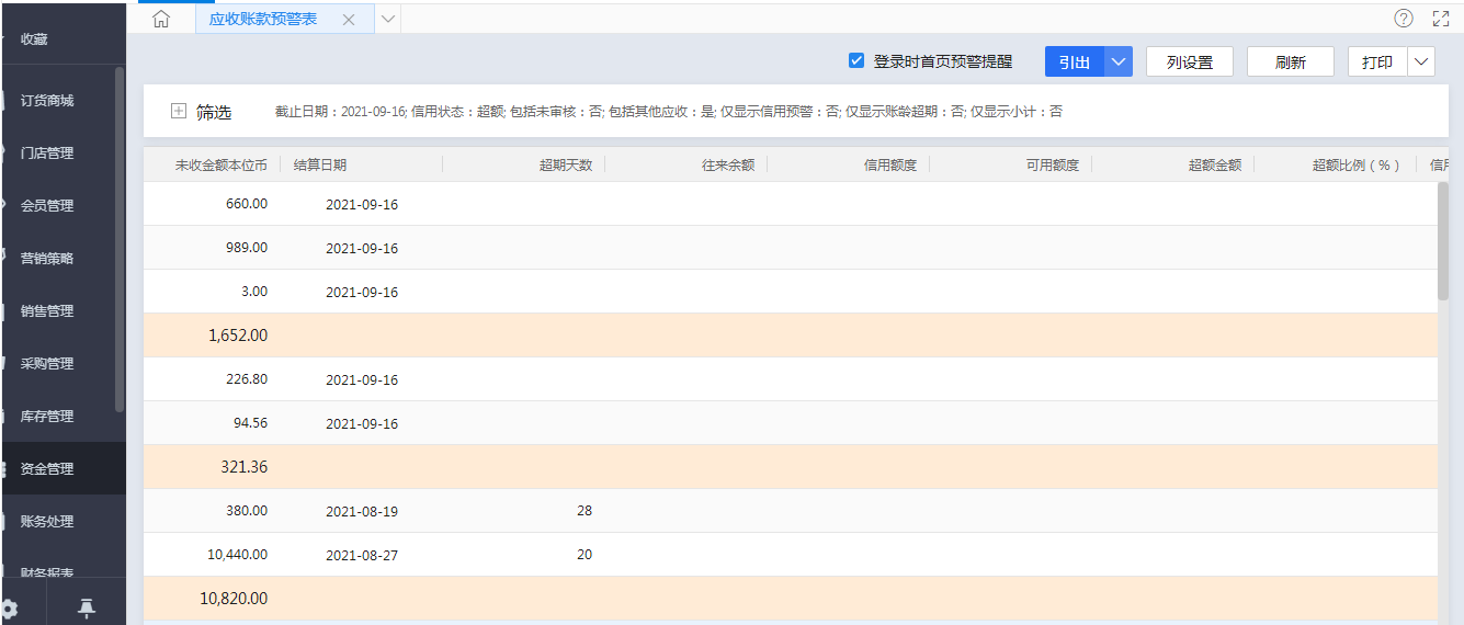在应收分析报表中,重点突出当期及上期回款、回款时间、临期提醒等,对于信用超额客户,系统自动锁单,对需要开锁的客户再设置审批流程,能有效降低坏账风险。