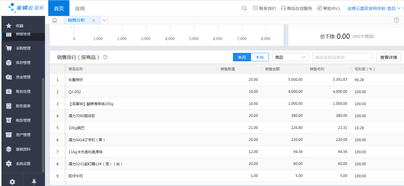 在系统中可以非常直观的看到不同品类和产品的销量情况以及滞销排行,再结合生产日期、保质期、库存等数据,帮助老板去做选品的决策和采购计划。