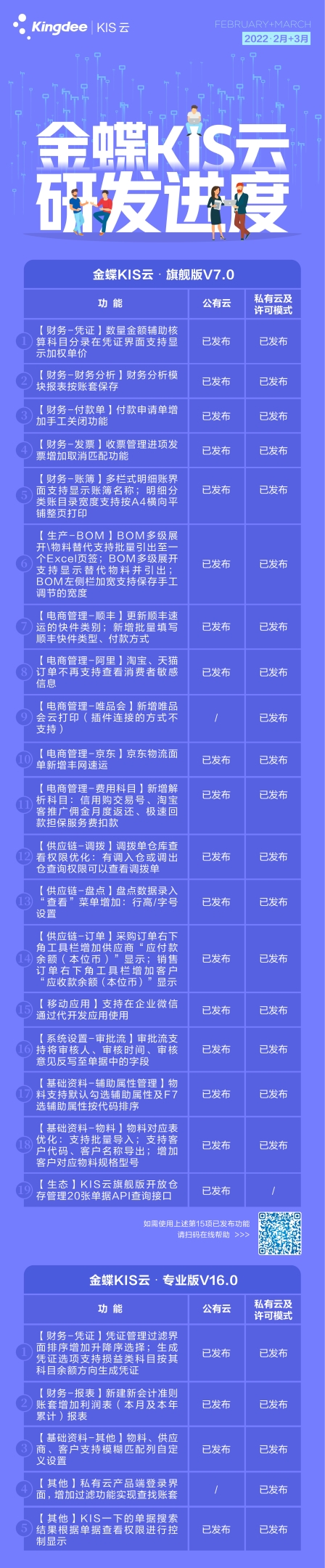 洛阳金蝶软件—2022.2-3月金蝶KIS云产品研发更新进度