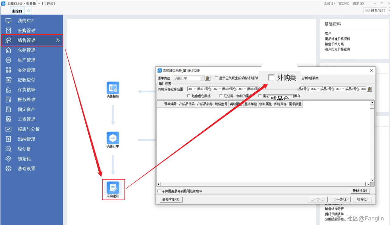(2)销售管理-采购建议功能,支持对外购类物料计算采购建议