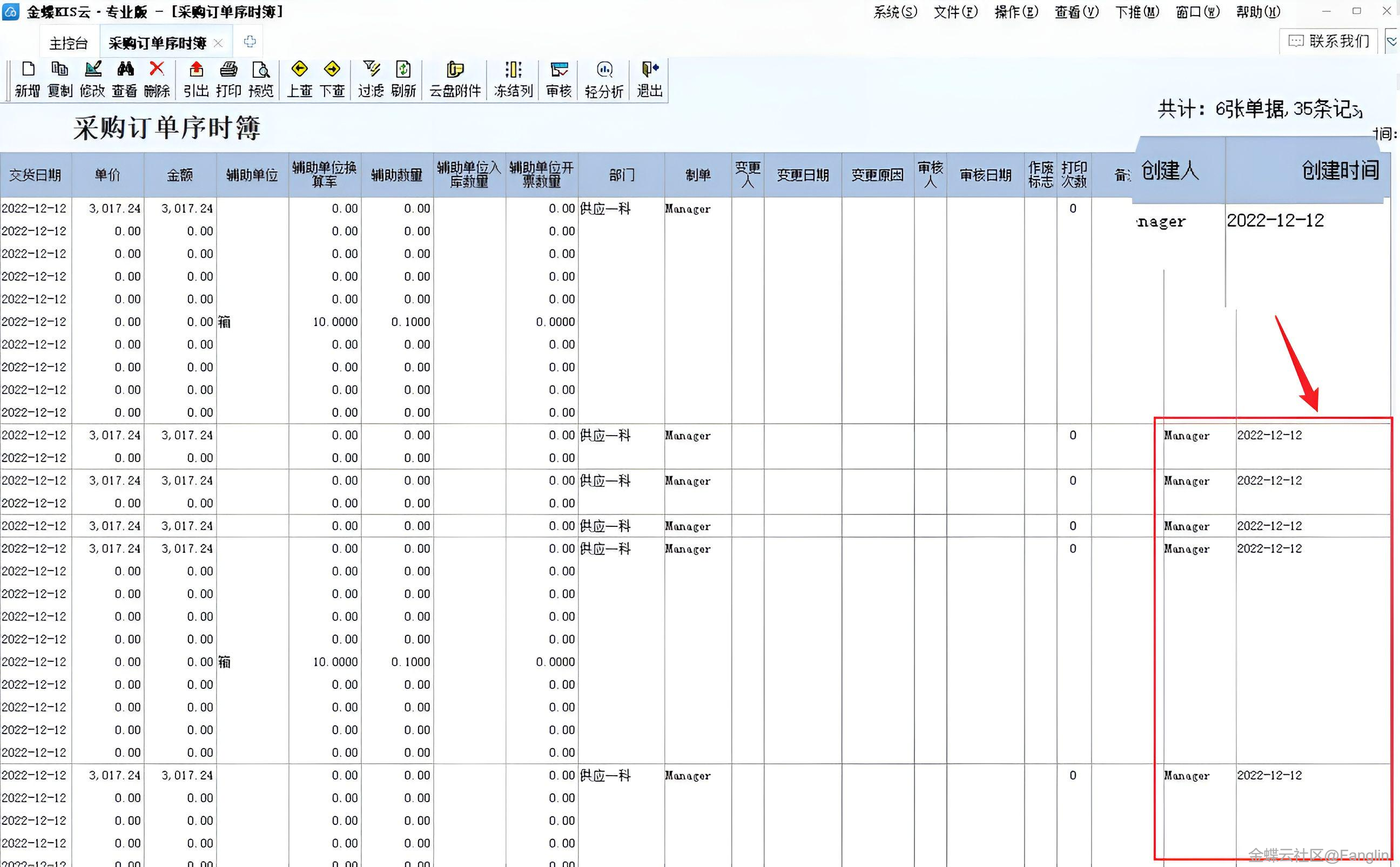 (3)单据序时簿及凭证管理界面增加创建人及创建时间字段