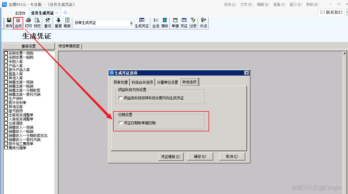 (4)当财务与业务处于同一期间时,支持单据生成凭证的凭证日期取单据日期