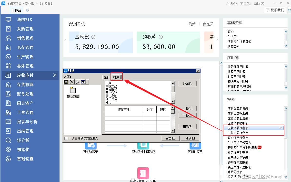 (7)应收/应付账款预警表,过滤界面支持排序功能