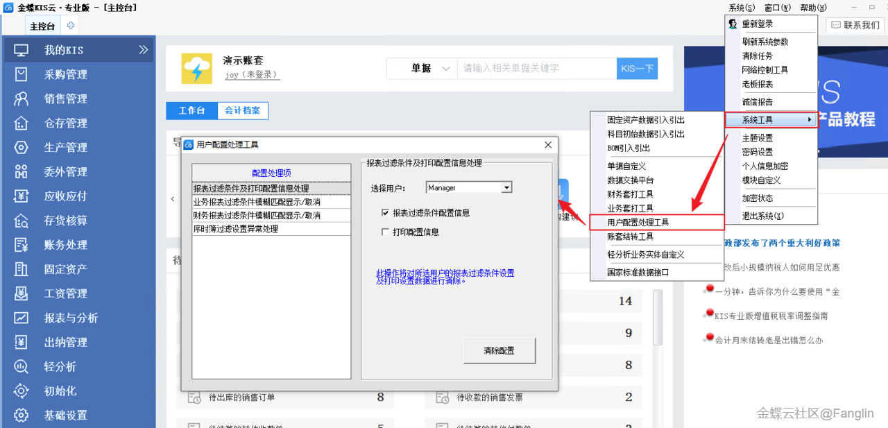 (2)系统工具新增【用户配置处理工具】